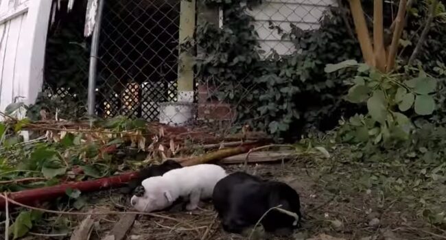 Hidden among the foliage, one puppy had become trapped in a fence, whimpering for assistance and unable to escape.